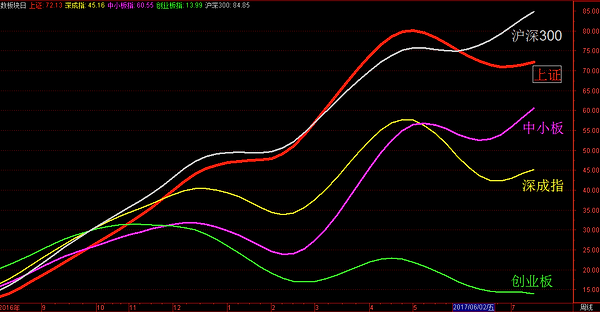 月线长期级别上,创业板指仍在下跌途中,相对其他指数在高位